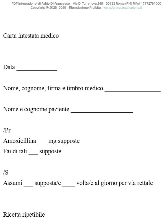Per i genitori che vogliono accedere a questa tipologia di trattamento per i propri figli, il primo passo è sempre una visita pediatrica. Solo il medico curante, dopo una valutazione clinica accurata, può decidere se un antibiotico in supposta è indicato per il tipo di infezione presente e per le condizioni del piccolo paziente. Se la scelta ricade su una formulazione galenica, il medico compilerà una ricetta ripetibile specificando il principio attivo, il dosaggio, la forma farmaceutica (supposte), il numero di unità da preparare e la posologia consigliata. La ricetta ha validità di 6 mesi e può essere presentata in una qualsiasi farmacia dotata di laboratorio galenico autorizzato.