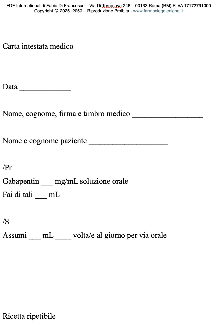 È importante sottolineare che l'uso del gabapentin in pediatria spesso avviene in modalità "off-label", richiedendo particolare attenzione nella valutazione del rapporto rischio-beneficio e nel monitoraggio clinico. La personalizzazione della terapia attraverso preparazioni galeniche consente di ottimizzare il trattamento in base alle specifiche necessità del paziente.