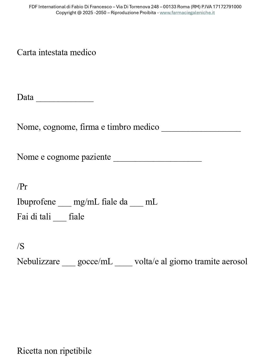 L'ibuprofene aerosol non è disponibile in commercio come farmaco industriale, ma può essere allestito come preparazione galenica magistrale. Questo significa che deve essere realizzato da farmacie dotate di laboratorio galenico, su prescrizione medica nominale. La forma utilizzata è l'ibuprofene sodico, più solubile in acqua rispetto all'ibuprofene acido. La sua preparazione prevede una reazione chimica tra ibuprofene e bicarbonato di sodio, che consente di ottenere una soluzione stabile e ben tollerata per via inalatoria, aspetto particolarmente importante per i piccoli pazienti.